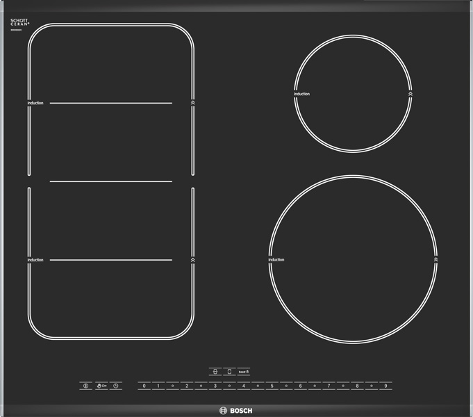 Kochfeld BOSCH PIN675N14E 60 cm Induktions - Kochstelle Glaskeramik, HighSpeed-Glaskeramik, dekorlos, DirectSelect, Timer mit Abschaltfunktion je Kochzone, Kurzzeitwecker, PowerBoost-Funktion für alle Kochzonen, 4 Induktions-Kochzonen mit Topferkennung, 1 FlexInduktion Kochzone, 17 Leistungsstufen, Hauptschalter, Sicherheitsabschaltung, Kindersicherung, 2 stufige Restwärmeanzeige je Kochzone, Wischschutzfunktion, Anschlusswert: 7,2 kW