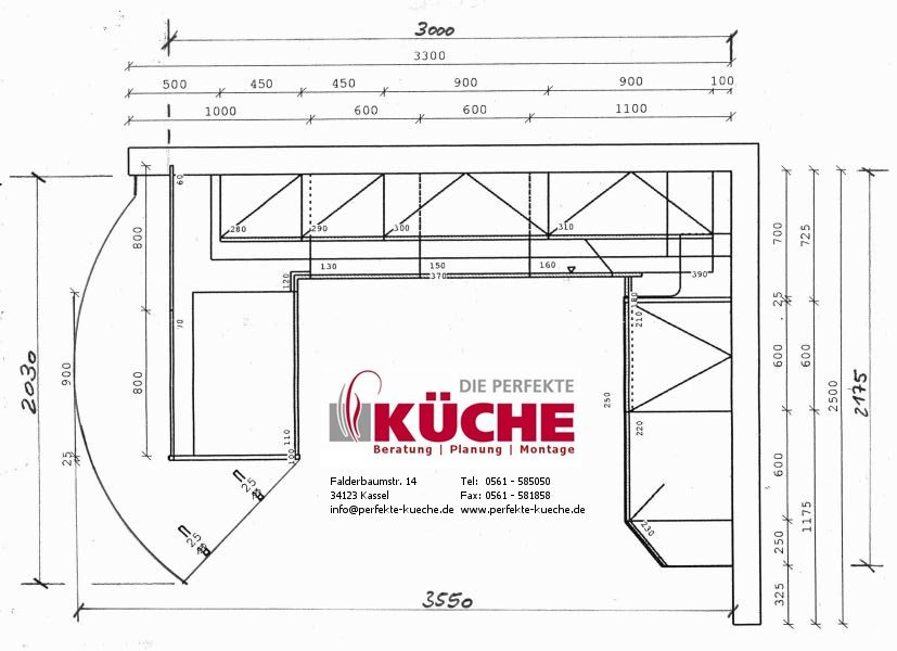Geräteumbau-Höhe 175 cm, Arbeitsplattenhöhe 91,5 cm.