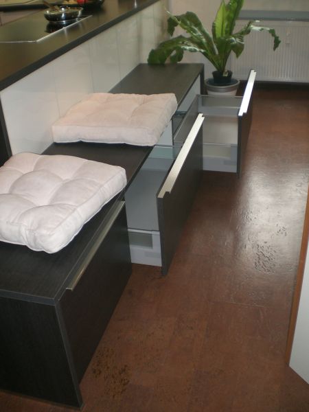 Schichtstoffarbeitsplatte und Kanten in Kastanie basalt Nachbildung 4 cm stark.