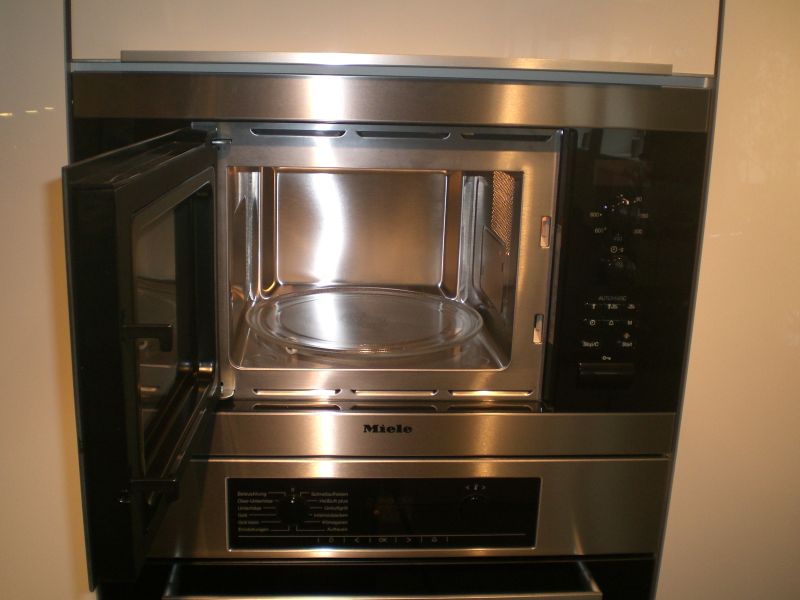 Mikrowelle MIELE M 8160-2, 11 Automatikprogramme, LC-Display, 6 Leistungsstufen 80/150/300/450/600/800 W, Edelstahl-Garraum 17 Liter, für Teller mit bis zu 28 cm Durchmesser geeignet, Garraumbeleuchtung, Vollglastür