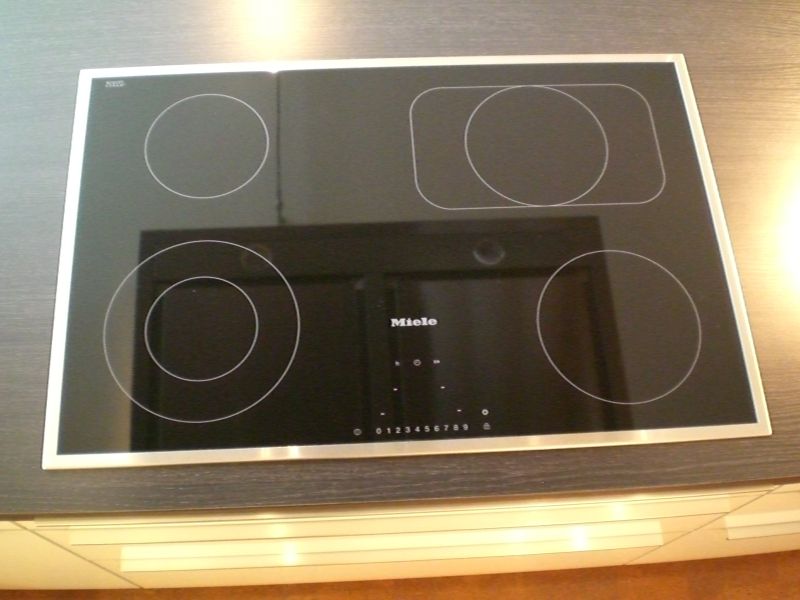 Kochstelle MIELE KM 5821 Glaskeramik mit Edelstahlrahmen, 4 HiLight-Kochzonen mit Ankoch-Automatik, davon 1 Kochzone als Vario-Zone und 1 Kochzone als Bräterzone, Vorne links 210/120 mm Ø, 2200/750 Watt, Hinten links 145 mm Ø 1200 Watt, Hinten rechts 170 mm Ø/290 mm Breite 1500/2600 Watt, Vorne rechts 180 mm Ø 1800 Watt, Direktanwahl, Stop&Go-Funktion, 4 zeitgleich nutzbare Timer, Abschalt-Automatik, Ankoch-Automatik, Restwärmeanzeige, Digitale Anzeige, Sicherheitsausschaltung, Verriegelungsfunktion