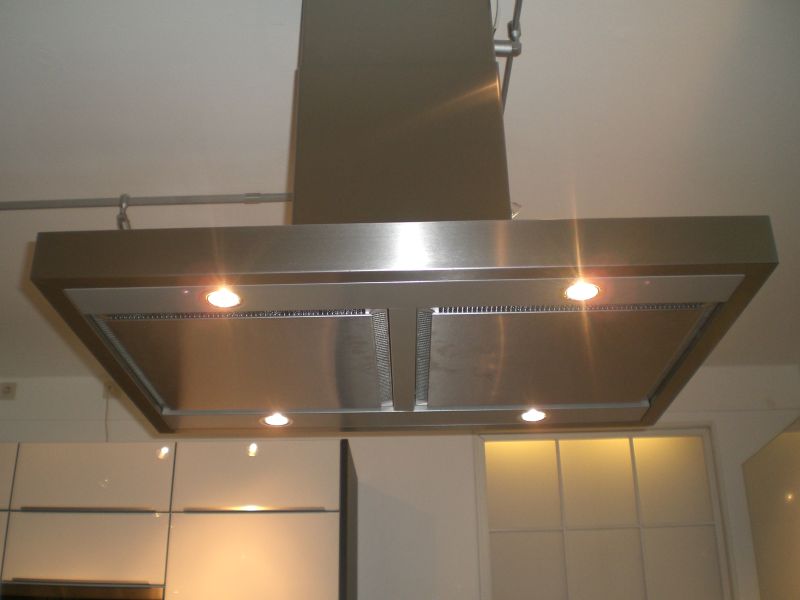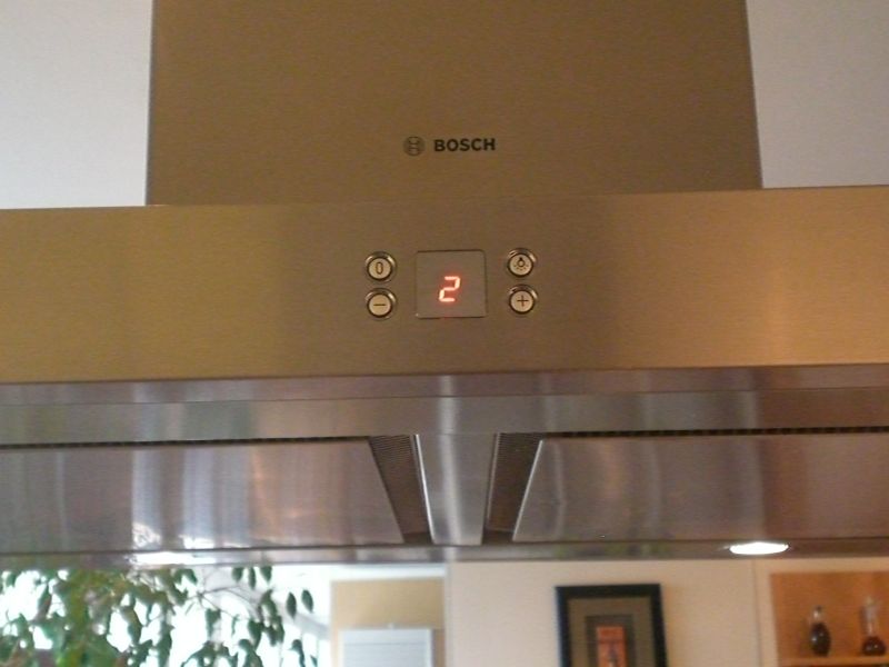 Inselhaube BOSCH DIB 105850, 100cm breit, Luftleistung: 820 m³/h bei Abluftbetrieb nach DIN/EN 61591, Abluftleistung freiblasend: max. 860 m³/h, 3 Leistungsstufen u. 1 Intensivstufe, mit Randabsaugung, Ausführung in Edelstahl, wahlweise Abluft- oder Umluftbetrieb, Geräusch bei max. Normalbetrieb 620 m³/h: 45 dB (A), entspricht 59 dB (A) re 1 pW nach DIN/EN 60704-2-13, Extrem geräuscharmer Betrieb durch spezielle Geräuschdämmung