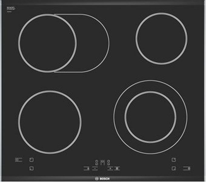 Kochfeld BOSCH NKN 675T14D, 4 HighSpeed-Kochzonen Glaskeramik, Zweikreis- u. Bräterzone