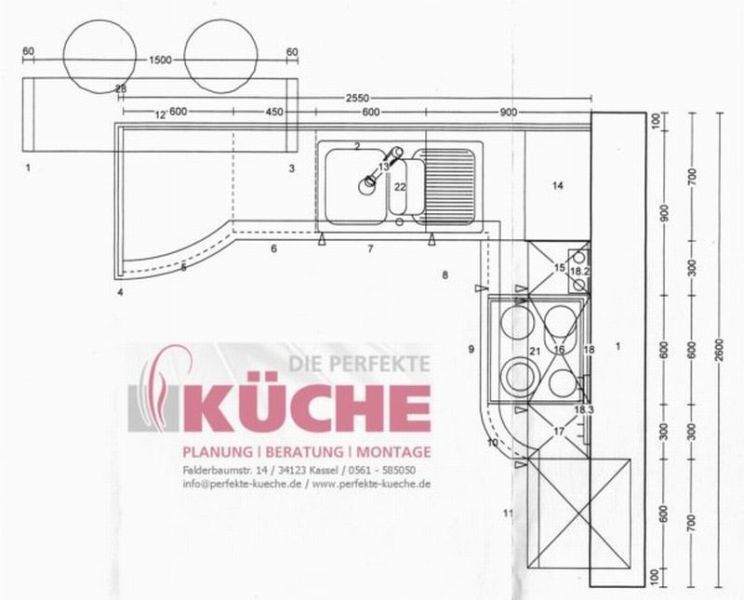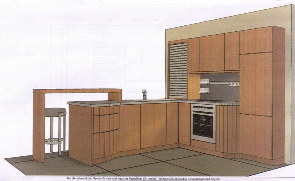 • Arbeitsplatte: Schichtstoff valentino hell (Details siehe Bild AP)